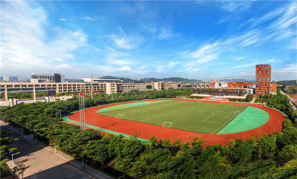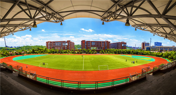 8868·体育夏日剪影: ▲俯瞰运动场:天空澄碧,远山含黛