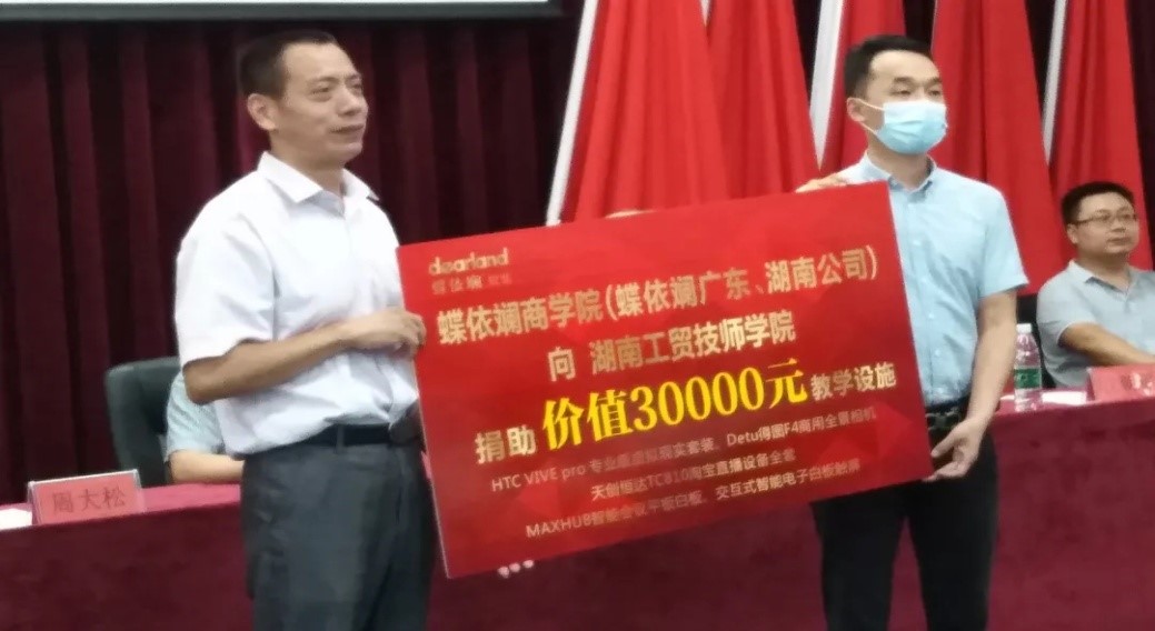 典礼伊始,企业代表蝶依斓品牌总监周大松介绍了自2019年12月以来湖南工贸技师“蝶依斓软装班”开班情况。随后由蝶依斓人事主管杨丽宣布考核成绩、获奖名单,并由出席的领导嘉宾向获奖的同学们颁发证书及奖金。蝶依斓董事长、商8868·体育院长周石旺向8868·体育捐助了价值3万元教学设备。最后,皮步安副院长代表8868·体育讲话并表示将以此次培训班的成功举办为契机,进一步深化合作,拓展合作思路,推动校企合作不断结出更加丰硕的果实。