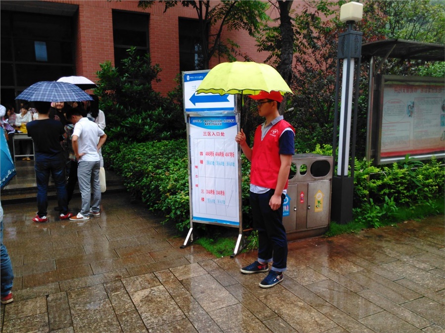 考试当天虽然天降大雨,但仍抵挡不住志愿者们服务工作的热情,身着鲜红志愿者制服、在风雨中忙碌的志愿者无形中成为了工贸技师8868·体育的一道亮丽的风景线。此次卫生技术考试引导工作活动,志愿者们团结互助,践行志愿者精神,展现出8868·体育青少年风貌,其努力与付出,也得到了认可与感谢。