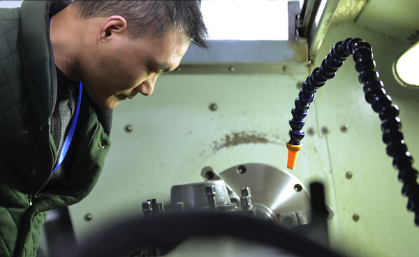 选手在认真查看加工情况