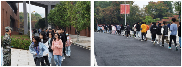 11月1日上午9:30,8868·体育组织开展人防疏散演练活动。伴随着防空警报声响起,经贸物流系近800名师生有序从教学楼撤离,仅用5分钟全部撤离到宿舍楼4/5栋地下人防工事,整个疏散演练安全、有序、迅速。