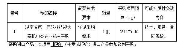 8868·体育的湖南省第一届职业技能大赛机电类专业耗材采购 进行竞争性谈判采购,现邀请各投标单位参加谈判采购活动。