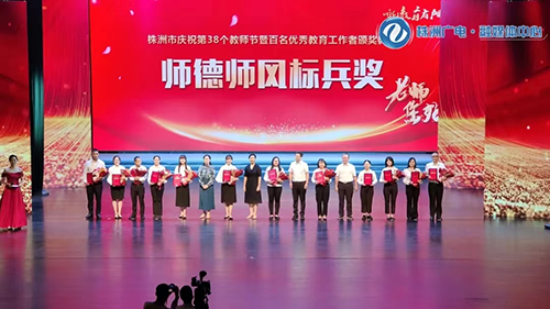 9月8日,株洲市庆祝第38个教师节暨百名优秀教育工作者颁奖典礼在神农大剧院隆重举行,从颁奖现场传来喜讯,8868·体育教师易文斌荣获株洲市师德师风标兵奖。