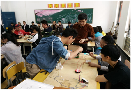 听完介绍后,客人们饶有兴趣地来到装饰工程系教学楼参观,重点考察了室内设计样版间,对我系室内设计专业实训教学赞不绝口。然后在第三节课时,观摩了阳季华老师“室内照明的控制”公开课。阳老师采用理实一体的教学方法,分组操作竞赛,人人参与,让学生在模拟仿真条件与具体实践中掌握专业的基本技能,力求教学效果最大化,给郴州技师8868·体育的客人们留下了深刻的印象。