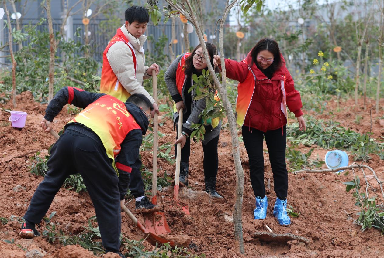 在植树活动现场,到处都是热火朝天的劳动景象。读书班学员们挥锹舞铲,严格按照植树技术标准,挖坑、放苗、培土、浇灌,种下紫薇、桂花、红叶石楠、樱花等树苗,一棵棵新栽的小树苗整齐排列、迎风挺立,展现蓬勃生机。植树活动为我们的城市带来一抹新绿,也把全民义务植树运动,建设人与自然和谐共生的美丽株洲的信念植入到每一位学员心中。