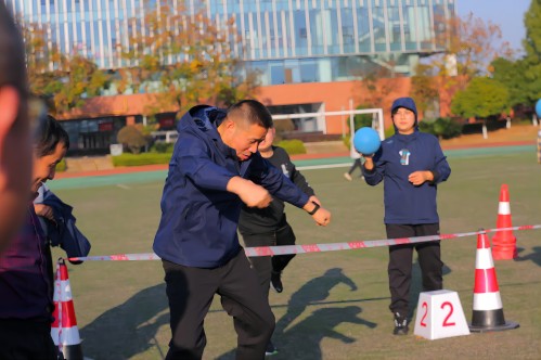 活动共设置了螃蟹暴走、趣味毛毛虫、躲避球、三方趣味拔河四个趣味比赛内容,集趣味性和运动性于一体。“不要急,稳一点,慢慢来”“干得漂亮!”“把握节奏”……现场气氛热烈,队员们个个铆足了劲,涨红了脸,全力以赴,一旁的啦啦队为上阵队员加油鼓劲,笑声、欢呼声、呐喊声回荡在田径场上空。