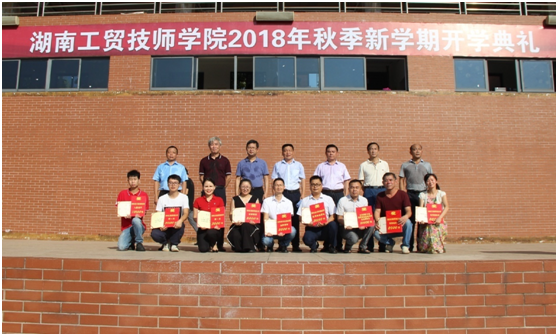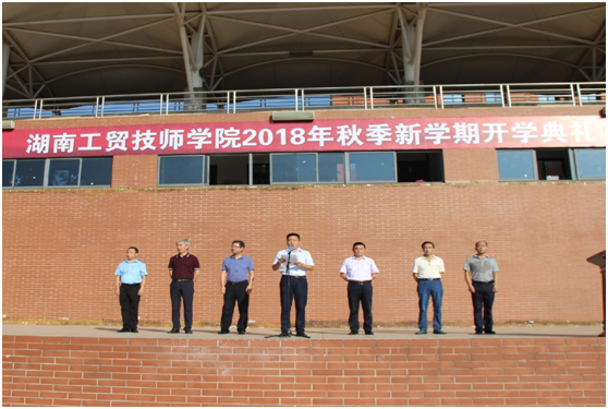 ▲党委书记张格林主持开学典礼,肖翔副院长宣读《表彰决定》,陈洪星院长致辞。