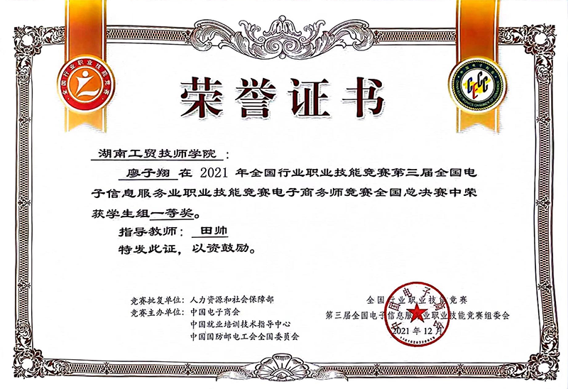 系部重视职业技能竞赛,以赛促教,以赛促学。曾荣获“信息化教学设计、说课大赛”全国一、二、三等奖、湖南省一等奖、株洲市一、二等奖,“教师微课制作大赛”全国二等奖、湖南省一等奖,“技工院校教师职业能力大赛”湖南省一等奖,“全国跨境电子商务技能大赛总决赛”教师组一等奖,“湖南省电子商务师技能竞赛”教师组二等奖等。2023年获技工院校通用职业素质课程优秀教师选拔一等奖。电子商务专业技能竞赛梯队学生,从2016年参赛至今,获得3项全国一等奖,在中高职、本科院校及企业三千余选手共同参赛的电子商务师竞赛中,连续两年拿下省决赛一等奖(第二名和第一名),2022年获湖南省第一届职业技能大赛银牌1人,学生参与其它赛项获奖共百余人次。师生参加湖南省消费帮扶营销大赛,荣获“湖南省2021年直播暨短视频大赛优胜奖”、“株洲市十佳新人主播”,“先进个人奖”,8868·体育也因此获得“优秀组织者”单位,受到株洲日报等主流媒体的关注和报道。